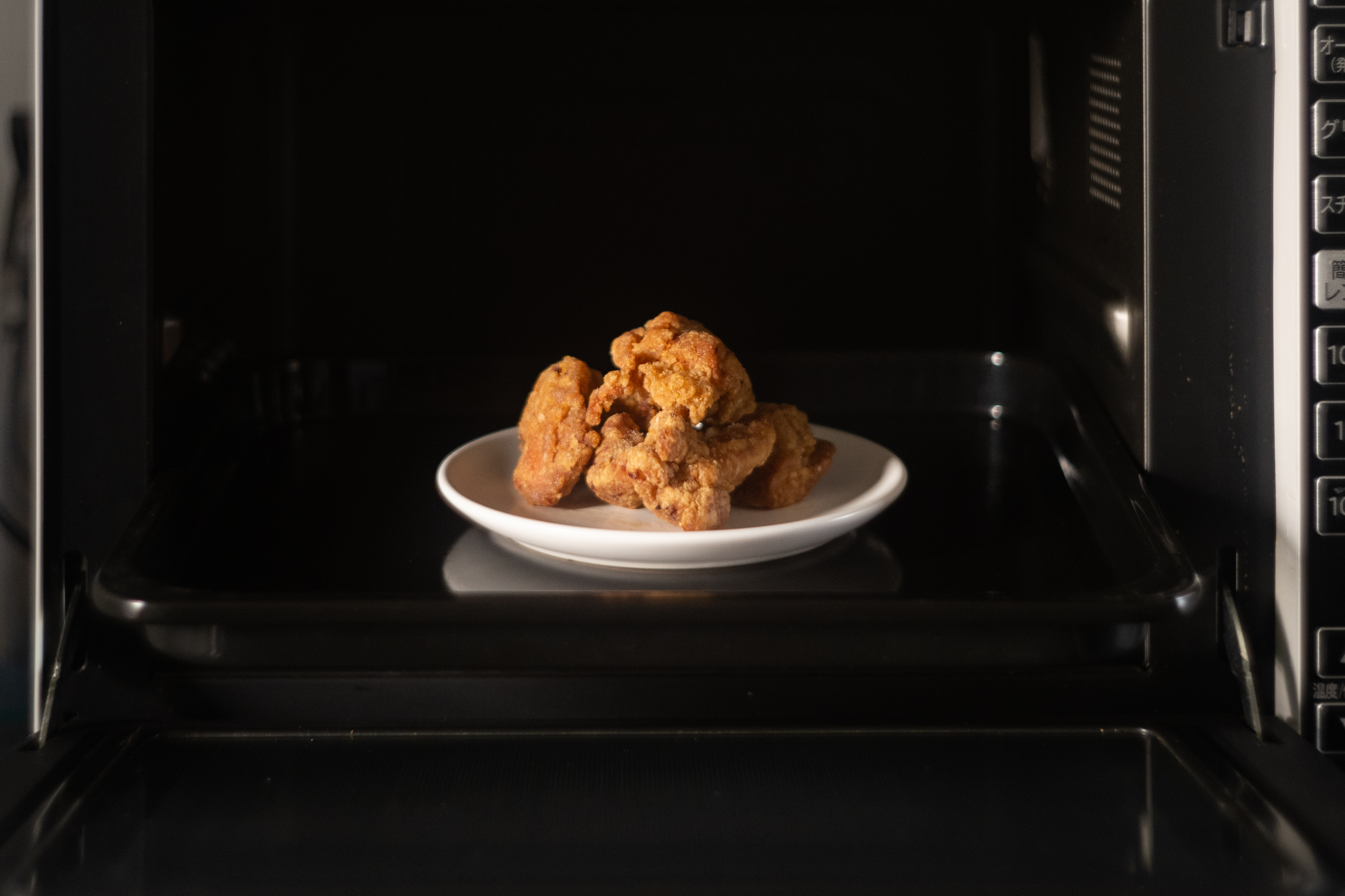 シワシワにしたアルミホイルに唐揚げを乗せてトースターで1分