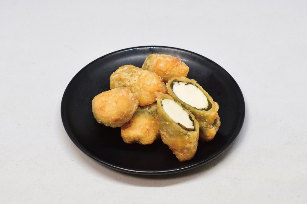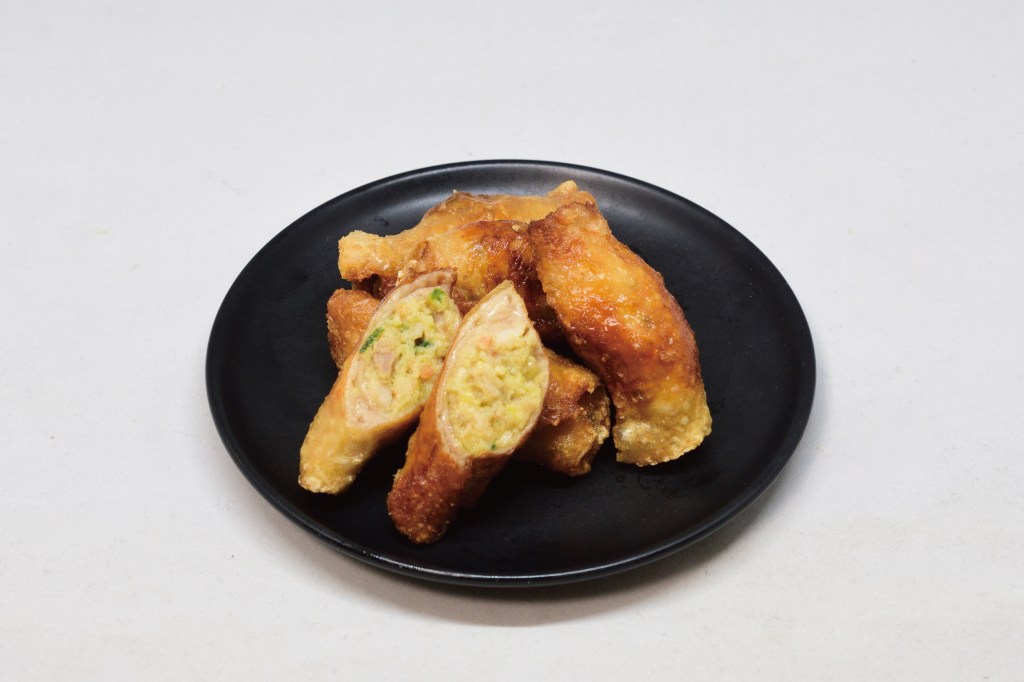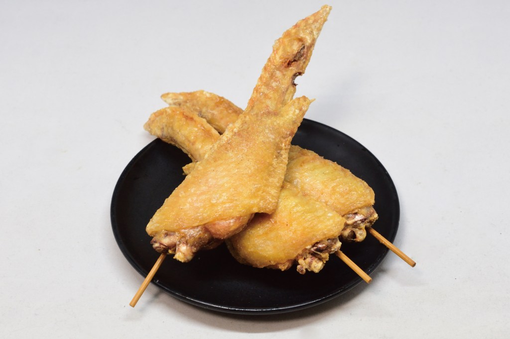鶏の皮に餃子の餡を包み、パリッとジューシーに焼き上げた一品